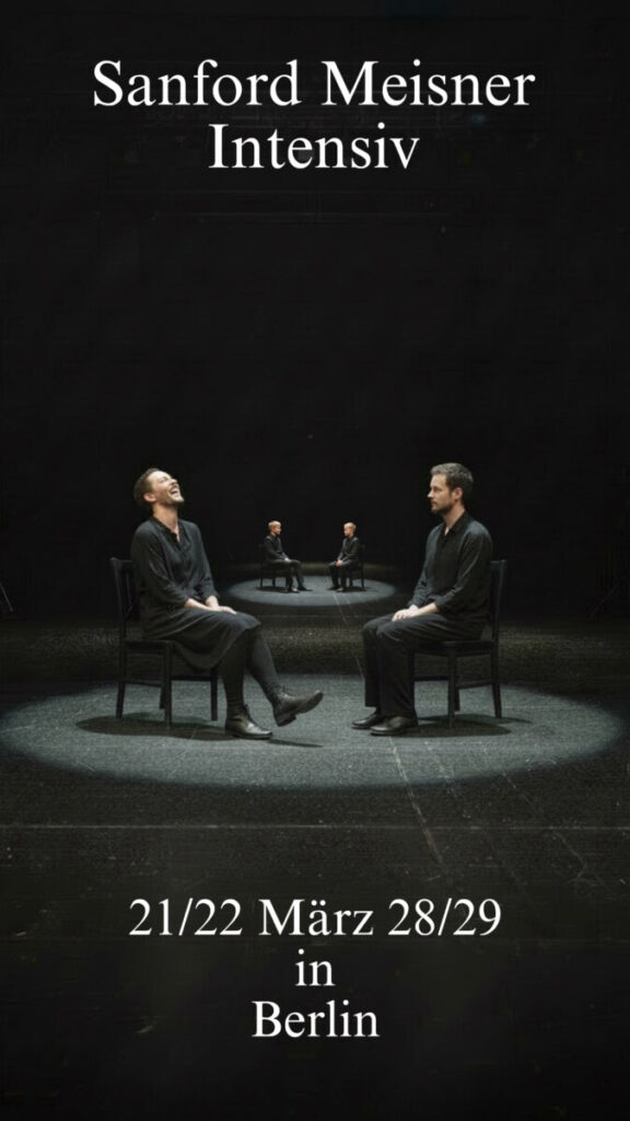 In dem viertägigen Kurs werden wir in die Grundprinzipien dieser einzigartigen Methode eintauchen. Vorzubereiten gibt es nichts. Im Laufe des Kurses werden kurze Monologe oder Szenen zur Verfügung gestellt, mit denen die Meisner-Methode anhand von Texten exploriert wird. Eigens gearbeitete oder schon gespielte Rollen sind aber grundsätzlich sehr willkommen!